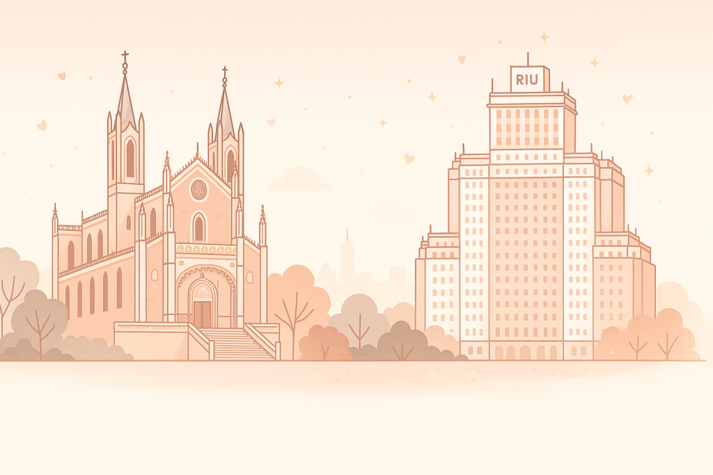 Tras la ceremonia, continuaremos la celebración en el Hotel Riu Plaza España. Su ambiente elegante y acogedor será el escenario perfecto para disfrutar de la fiesta, brindar, bailar y crear recuerdos inolvidables que nos acompañarán siempre.